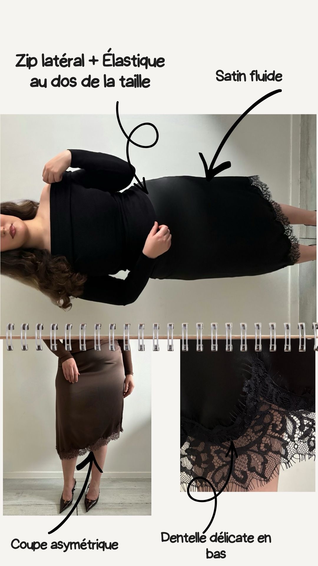 Jupe satin asymétrique dentelle