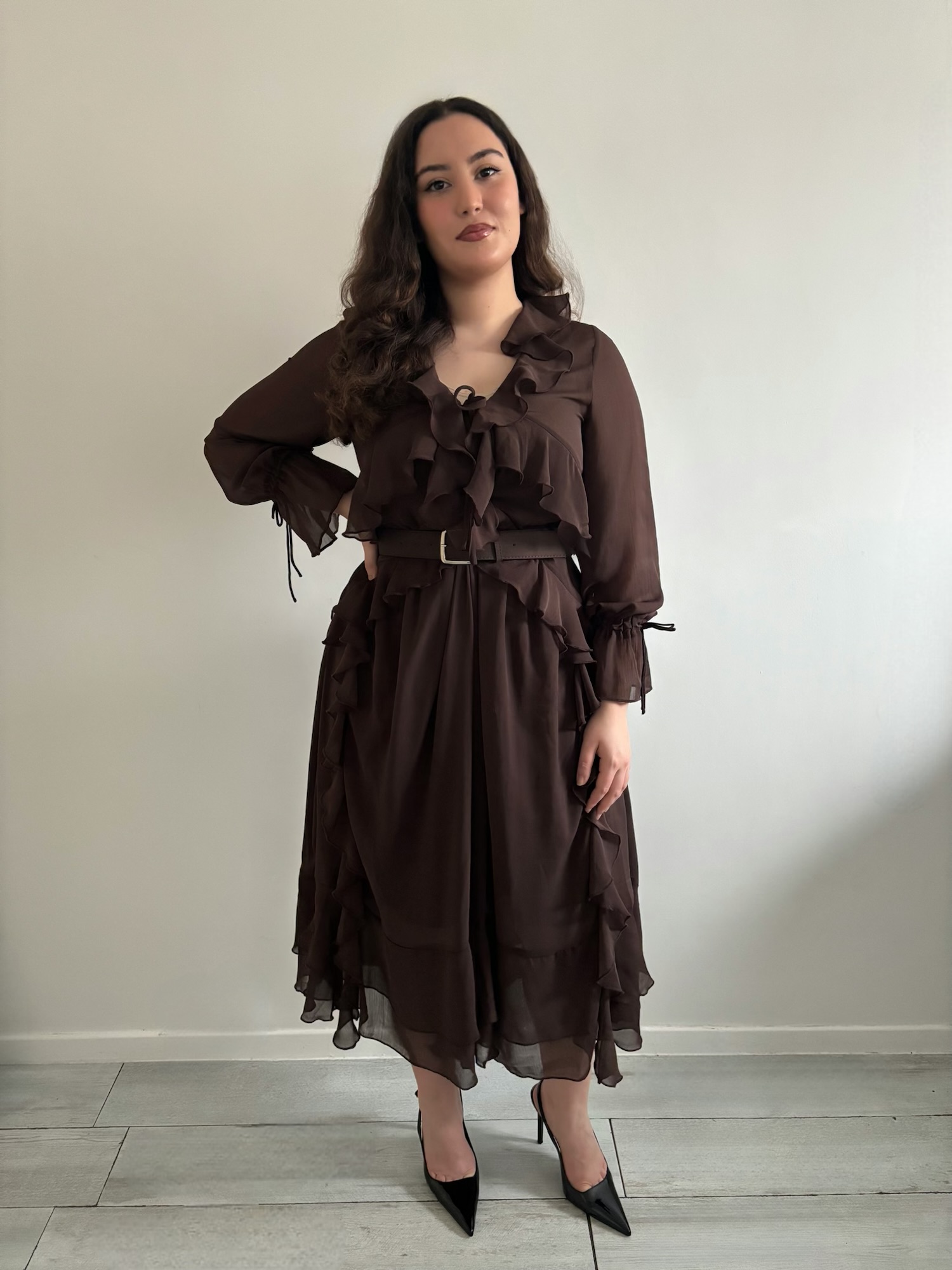 Robe longue à volants, Ceinture non incluse.